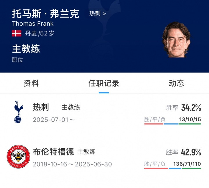 a8体育 8轮不胜+仅高降级区5分! 官方: 热刺主帅弗兰克下课, 带队仅8个月