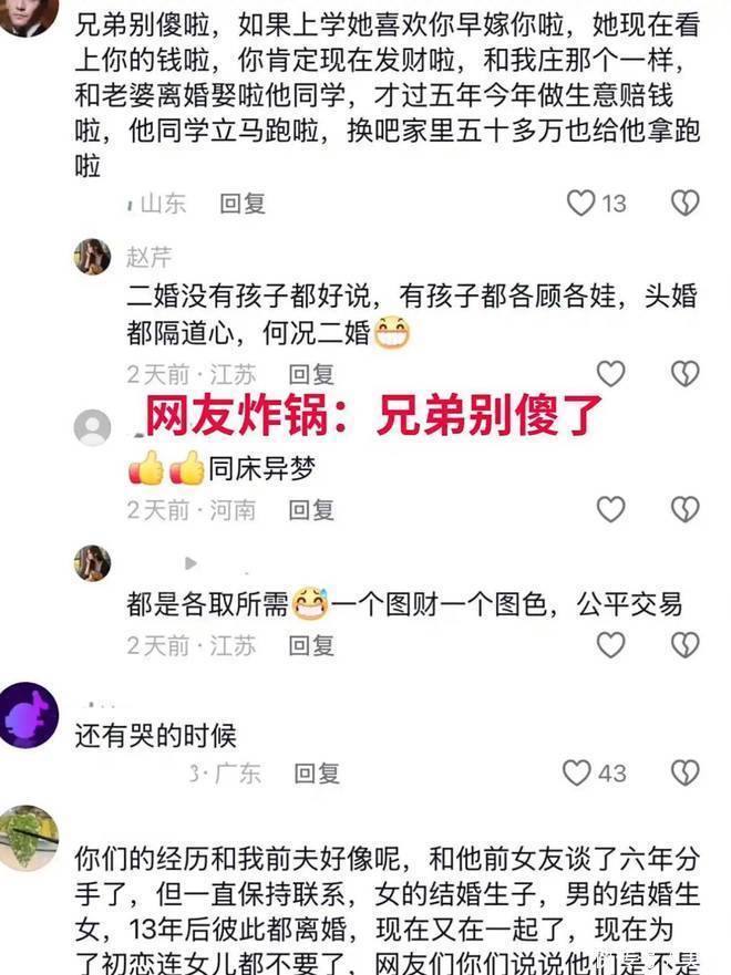 此网友称,其同村的老乡,与细君离异后迎娶了初恋,只是过了五年,本年在作念交易时遭逢蚀本,初恋竟坐窝逃离,还带走了家中五十万过剩,真的令东说念主咳声叹惜,感叹不已。