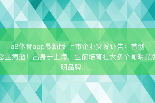 a8体育app最新版 上市企业突发讣告:首创东说念主病逝!出身于上海,生前培育壮大多个闻明品牌……