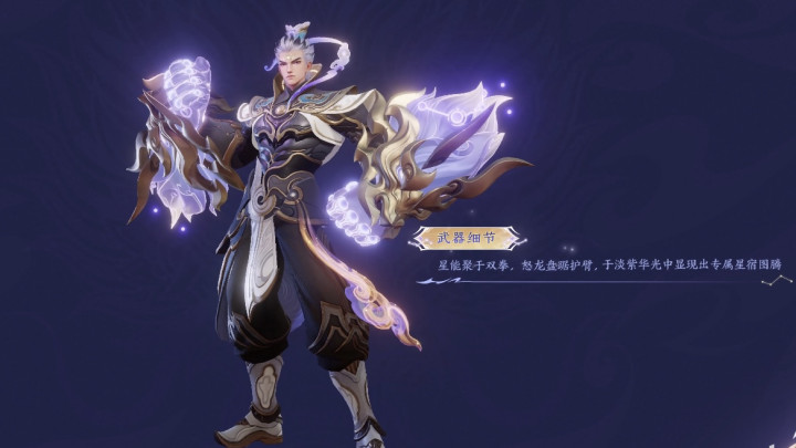 值得一提的是达摩这款皮肤的火器打算,会有能量星辰在拳套头部蚁合,况兼拳套尾端像龙的髯毛,护臂上有金属龙头。