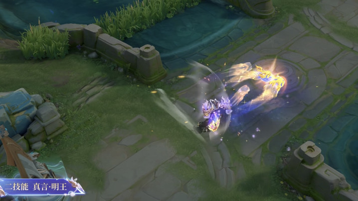殊效打算方面,达摩这款皮肤在触发被迫遵守时,身边会出现亢金龙的龙头影子,星光在肉体周围旋转,形成一个星辰护盾,打出强化普攻时会径直把龙头打出去。