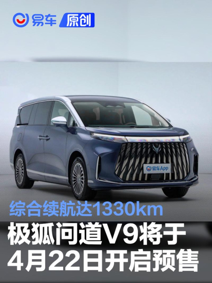 易车讯咱们从北汽极狐官方获悉,旗下全新MPV问谈V9将于4月22日开启预售。问谈V9照旧在本月初亮相,新车基于北极星全数字化高端平台打造,概述续航可达1330km,展望将于二季度上市。