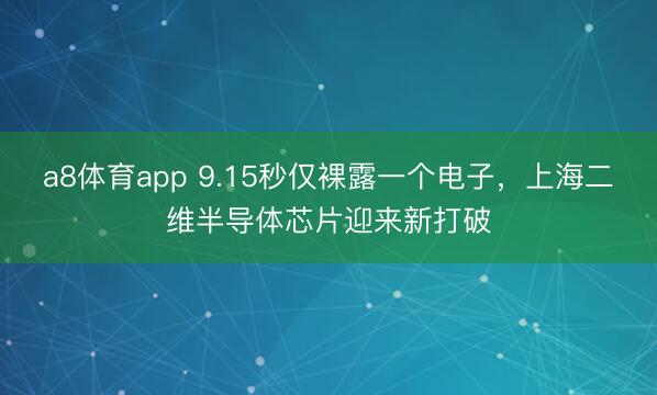 a8体育app 9.15秒仅裸露一个电子,上海二维半导体芯片迎来新打破
