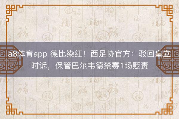 a8体育app 德比染红!西足协官方:驳回皇立时诉,保管巴尔韦德禁赛1场贬责