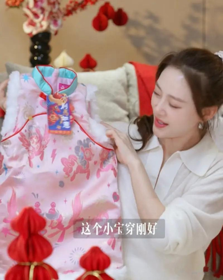 视频中定制的粉色旗袍炫耀了二胎孩子的性别。