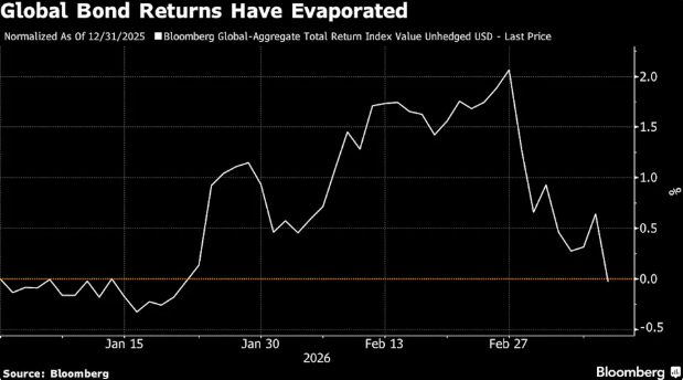 面前,跟踪投资级政府债券和公司债券总答复的彭博大家概括债券指数基本与岁首的水平捏平,此前油价周四回升至每桶100好意思元以上,令大家债市抛售潮延续。该指数本年早些技能(结果2月27日)曾高涨高达2.1%,但随后好意思国总统特朗普对伊朗发动了抨击,这突显了地缘政事冲击何如赶紧逆转了市集情怀。