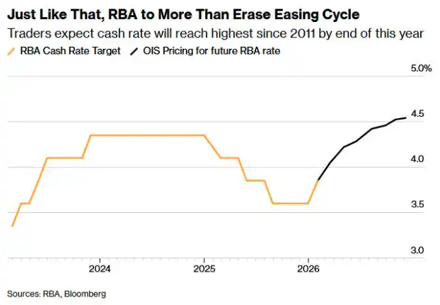 从现时的利率订价看,往复员瞻望英国央行年内将加息约10个基点、欧洲央行将加息约40个基点、加拿大央行将加息约30个基点、而2月依然领先加息的澳洲联储致使还可能进一步加息约65个基点……