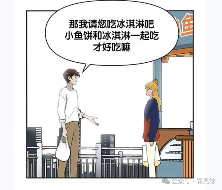 漫画是柔好意思买走了终末8个鲷鱼烧,分给了驯鹿4个,况兼莫得收他钱,为表感谢,他主动忽视请柔好意思吃冰淇淋。有来有往才是平时东谈主酬酢的弘扬吧?
