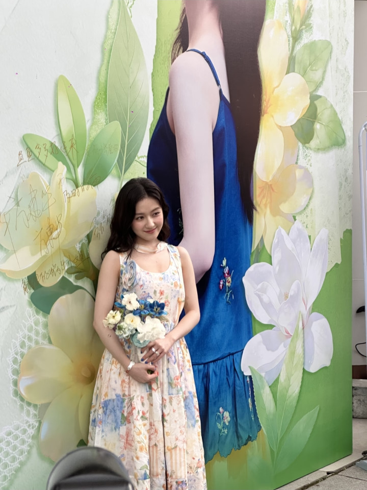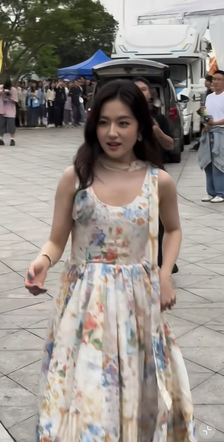 莫得刻意凹造型,疏漏舒展的情景,配上这身簇新又仙气的裙子,悉数这个词东谈主像从画里走出来的邻家甜妹,顺心又元气。