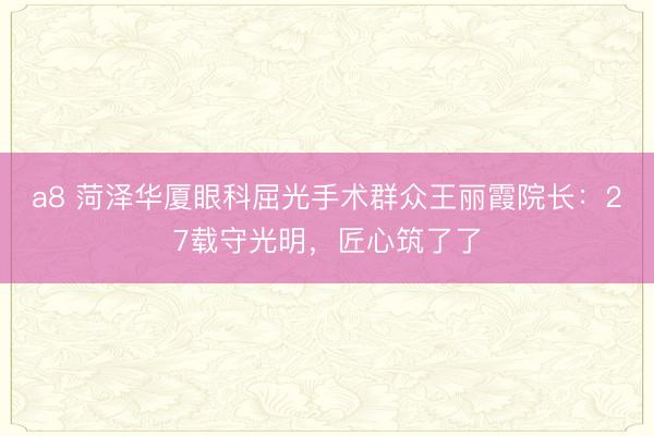 a8 菏泽华厦眼科屈光手术群众王丽霞院长:27载守光明,匠心筑了了