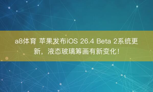 a8体育 苹果发布iOS 26.4 Beta 2系统更新,液态玻璃筹画有新变化!