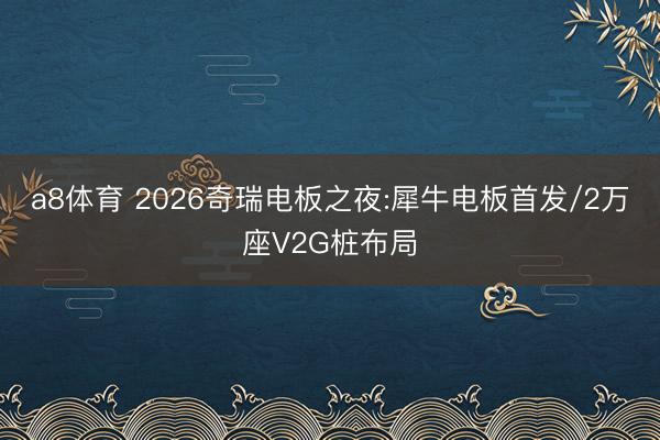 a8体育 2026奇瑞电板之夜:犀牛电板首发/2万座V2G桩布局