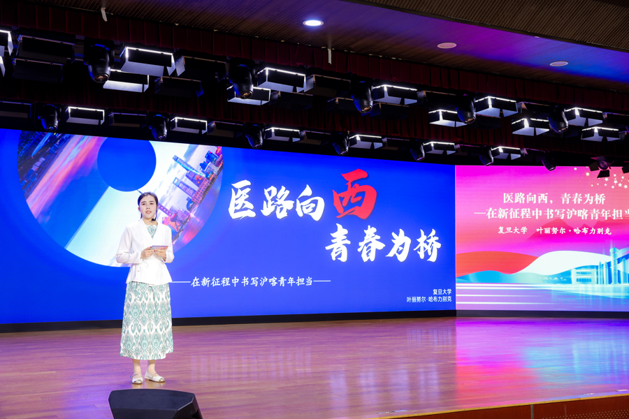 当作复旦大学上海医学院临床医学本科生的新疆小姐叶丽努尔·哈布力别克,也讲解了我方眼中的“沪喀情深”。“从头疆到上海,横跨中国,五千多公里,远到能在飞机上学完三章系统剖解学。”但一些阅历和见闻让她发现,“有些距离,并不是用公里数来算计的。它会在好多具体的眨眼间,被少量少量拉近。”