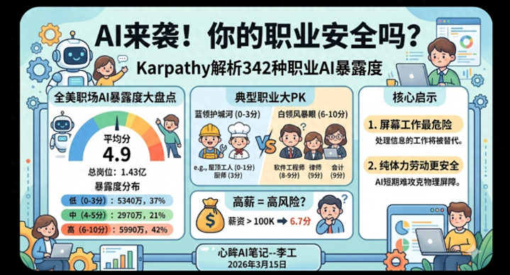 就在今寰宇午,AI圈的标杆东说念主物Andrej Karpathy发布了一个名为karpathy/jobs的开源容貌。他调用了Gemini Flash大模子,对好意思国劳工统计局(BLS)记载在册的一说念342个奇迹进行了一次深度“体检”。