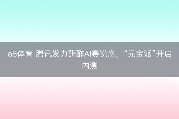 a8体育 腾讯发力酬酢AI赛说念,“元宝派”开启内测
