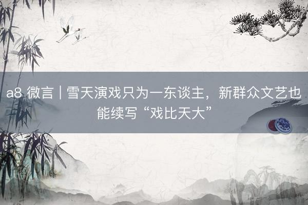 a8 微言 | 雪天演戏只为一东谈主,新群众文艺也能续写 “戏比天大”