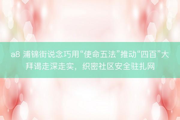 a8 浦锦街说念巧用“使命五法”推动“四百”大拜谒走深走实,织密社区安全驻扎网