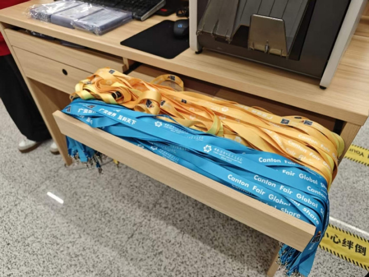 “以往的参展商的证件王人所以蓝色为主,在广交会时间普通会形成无须要的歪曲,为此咱们这次推出的不同色系的证件,不错有用地匡助参展东说念主员正确识别不同的东说念主群。相通于奉陪翻译东说念主员,他们的证件和系带的颜料王人是黄色的,随机彰着地和参展商区别开来。”
