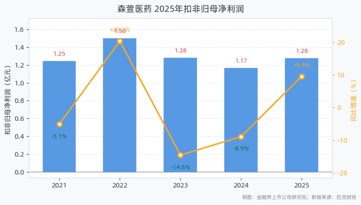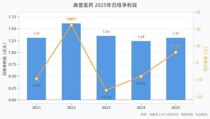 4月22日,森萱医药发布2025年年报。发扬涌现,2025年公司完了生意总收入5.53亿元,同比增长2.87%;归母净利润1.31亿元,同比增长6.24%;扣非归母净利润1.28亿元,同比增长9.56%;基本每股收益0.31元,加权平均ROE为10.75%;设想行动净现款流1.97亿元,同比增长14.89%。