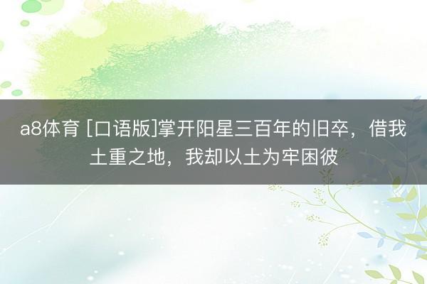 a8体育 [口语版]掌开阳星三百年的旧卒,借我土重之地,我却以土为牢困彼