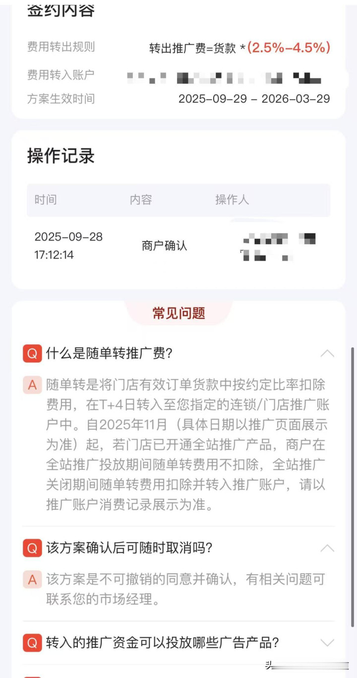 也便是说,怒放了“随单转”的商家,其外卖订单会被扣除一部分,用于在平台宣传我方的店铺,况且这笔钱不成提现。