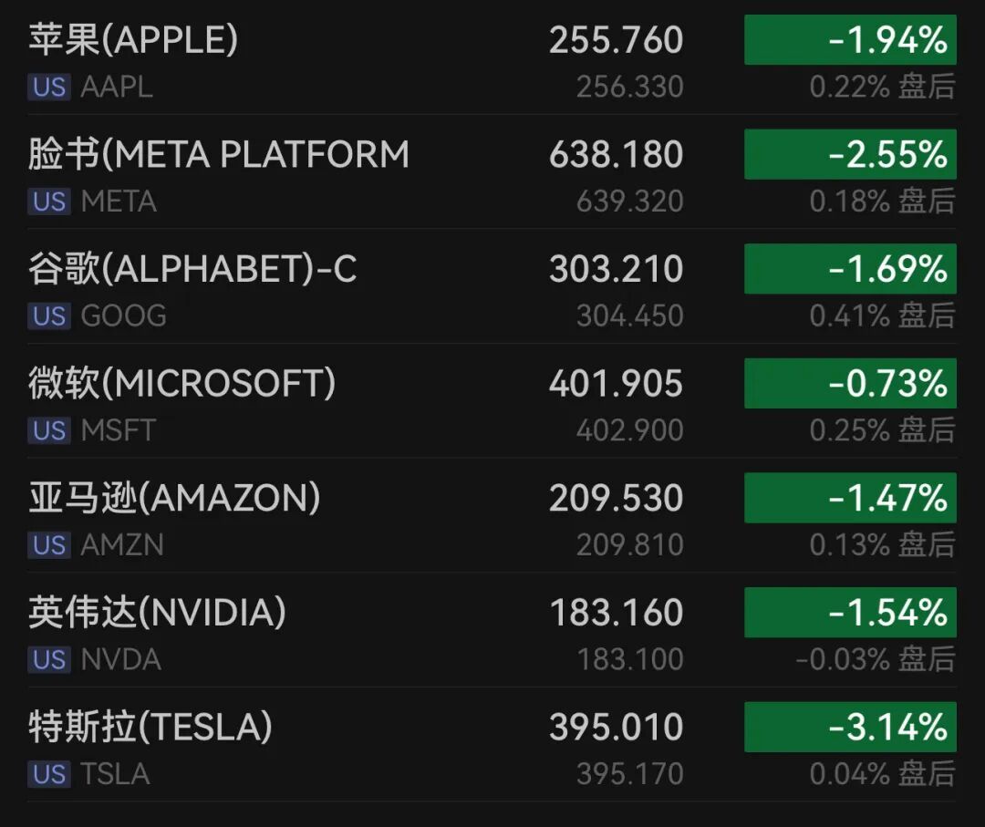 大型科技股多半下降。超威半导体跌3.46%,特斯拉跌3.14%,Meta跌2.55%,甲骨文跌2.43%,苹果跌1.94%,谷歌-A跌1.67%,博通跌1.64%,英伟达跌1.54%,亚马逊跌1.47%,微软跌0.73%。