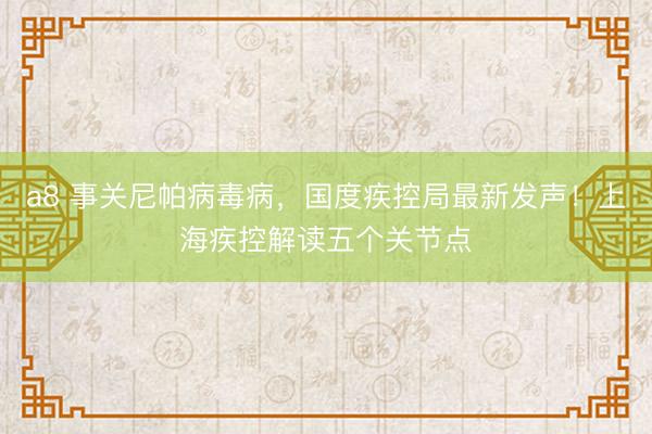 a8 事关尼帕病毒病,国度疾控局最新发声!上海疾控解读五个关节点