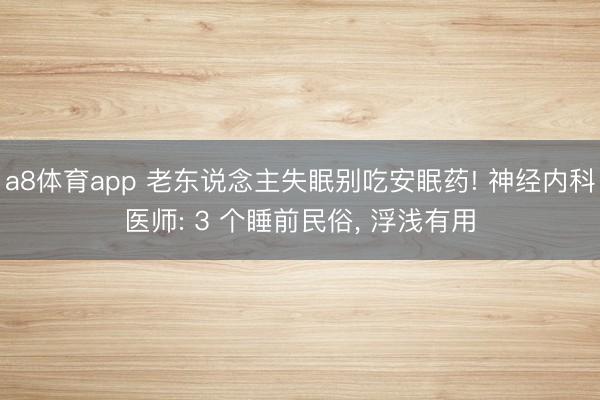 a8体育app 老东说念主失眠别吃安眠药! 神经内科医师: 3 个睡前民俗, 浮浅有用