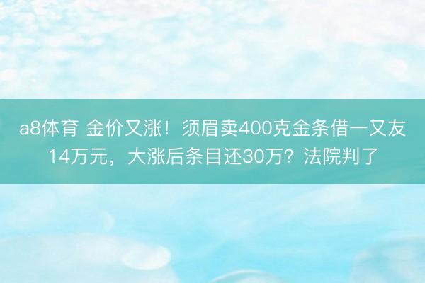 a8体育 金价又涨!须眉卖400克金条借一又友14万元,大涨后条目还30万?法院判了