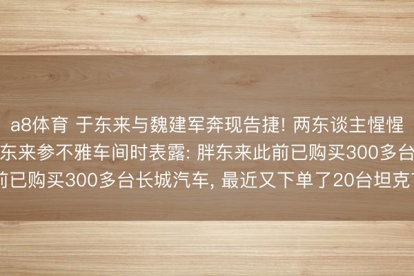 a8体育 于东来与魏建军奔现告捷! 两东谈主惺惺惜惺惺“双向观赏”, 于东来参不雅车间时表露: 胖东来此前已购买300多台长城汽车, 最近又下单了20台坦克700送高管